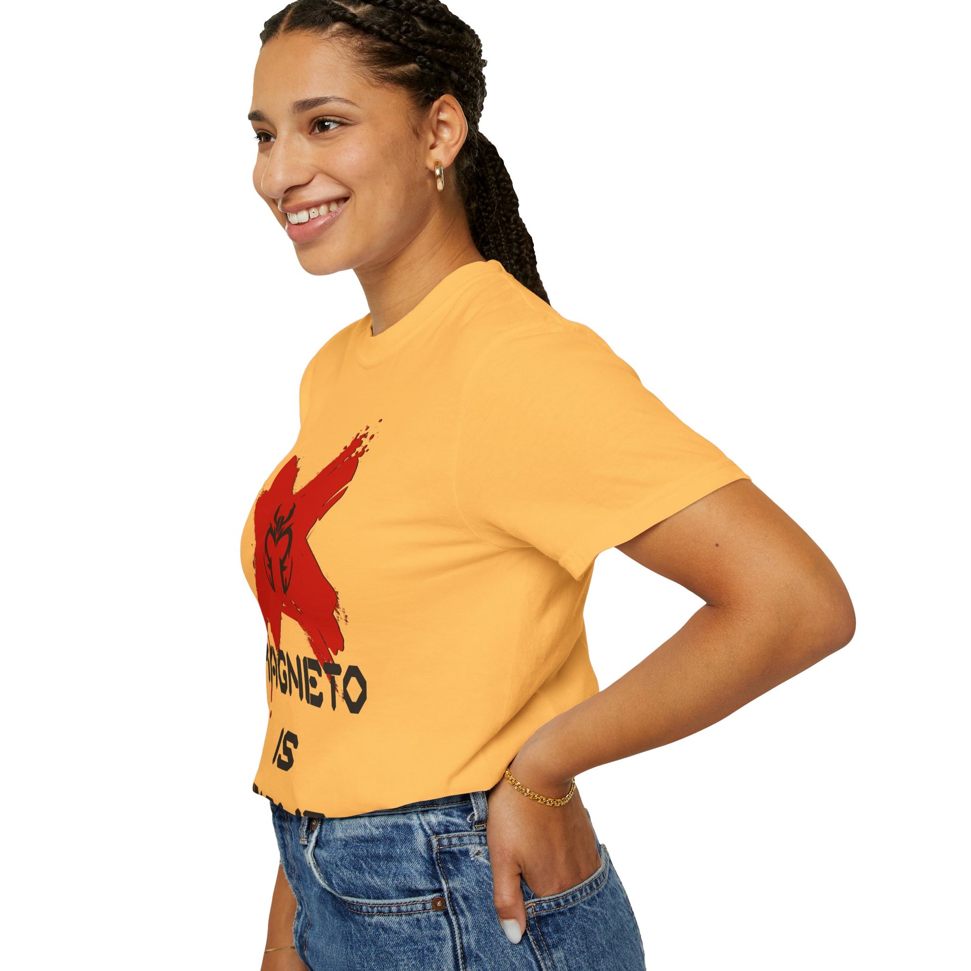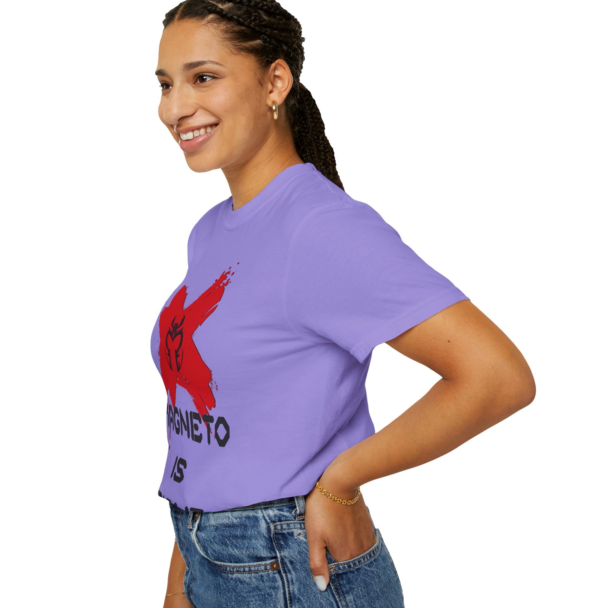 The relaxed fit and medium-weight fabric drape easily over jeans or layered under a jacket. Garment dyeing gives each shirt a slightly broken-in color and texture, so it feels like one you’ve loved for years from day one. Wear it to conventions, movie nights, debates with friends, or anytime you want your allegiance to be spoken plainly.